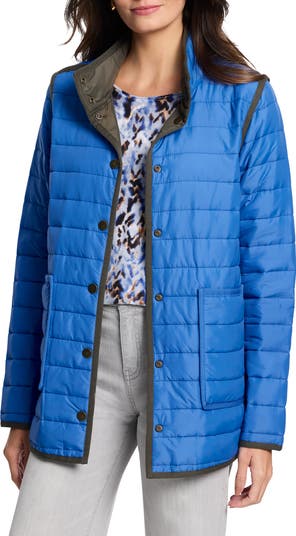 I bought this jacket for the bright blue color, which is stunning. (Not a fan of the olive on the reverse). Fits TTS with some room for layering underneath. This is not a keep-you-really-warm puffer. But it is a nice, light layer most appropriate for 50+ temperatures. In my area, I can wear it in fall, spring, and on warmer winter days. So, 2.5 seasons! Glad I was able to get this Nic + Zoe gem on sale after Christmas :)