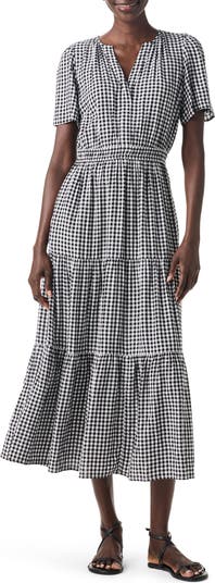 Keep it breezy and light in this tiered maxi dress printed in playful gingham.
