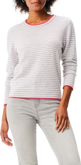 Cute and comfortable, this striped cashmere sweater is fashioned with a contrasting crewneck and cuffs.