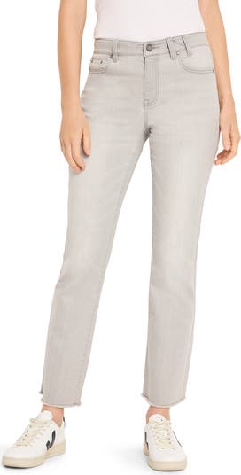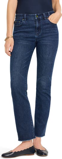 Modern and fun to wear, these stretchy jeans feature a mid-rise waist, slimmed-down bootcut legs and softly frayed, ankle-grazing hems.