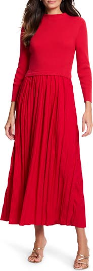 A knit bodice provides a perfect textural contrast to the woven skirt of a mixed-media dress that's equal parts artsy and sophisticated.