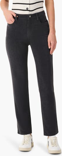 Easily go from desk to dinner in these mid-risen pants cut from stretch corduroy fabric in a straight-leg silhouette.