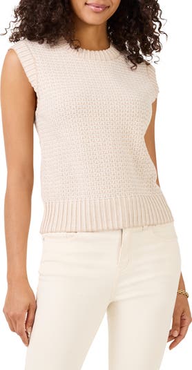 Beautifiully textured stitches highlight the shape of this sweater vest that works perfectly in your layered look and stands on its own just as well.
