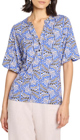 Made with seaside vibes in mind, this stretch-kissed jersey top is covered in an impressionist ocean print that pairs perfectly with your next long walk on the beach.