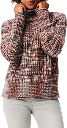 Made from a cozy cotton-blend, this medley stitched sweater is topped with a chic turtleneck.
