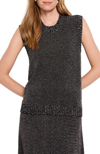 This sleeveless sweater has a pixel-inspired pattern that's softly textured making it an instant classic with its versatile silhouette that's made of a cotton blend.
