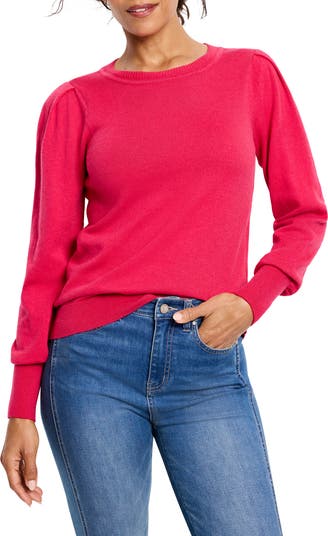 Fall in love with this staple crewneck sweater updated with charming shoulder pleats.