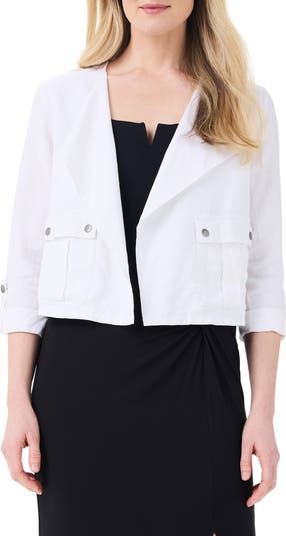 Cargo pockets bring a bit of utilitarian appeal to a moto jacket in a lightweight linen blend.
