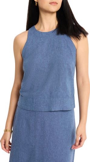 A lightweight linen blend elevates this summery and chic sleeveless top cut in a drapey silhouette with keyhole cutout at the back.