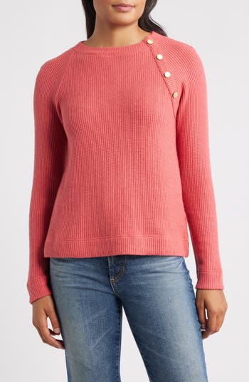 Brassy buttons mark the raglan sleeves of this thermal-knit top that works equally well with both elevated and more casual looks.