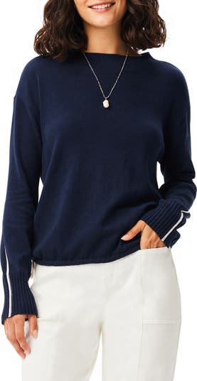 Dropped shoulders frame this slouchy cotton-blend sweater topped with a cozy funnel neck.