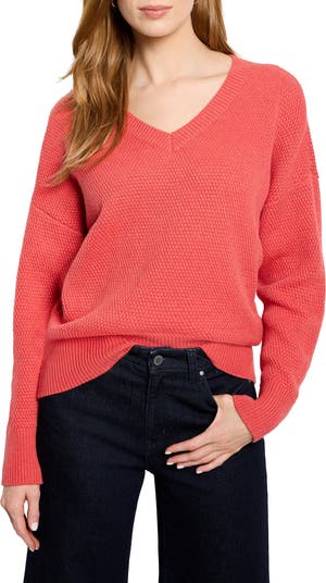 You'll wear and enjoy this V-neck sweater with dropped shoulders that's knit from soft cotton-blend yarn to be a closet classic.