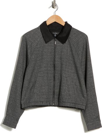 Refresh your work day essentials or polish up your weekend ensembles with this spread-collar bomber jacket patterned in houndstooth checks.