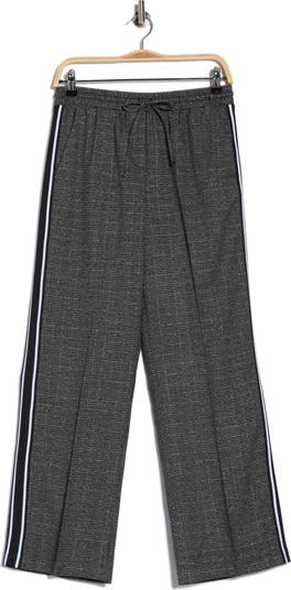 Contrasting stripes run down the sides of these pull-on pants styled with a straight leg and covered with a houndstooth print.