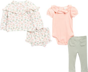 Cotton-blend fleece fabrication keeps baby feeling comfy and cozy in this assorted set that can be mixed and matched to create endless pairing options.