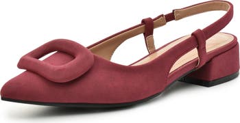 A tonal frame tops the pointed toe of this slingback pump elevated by a walkable heel.