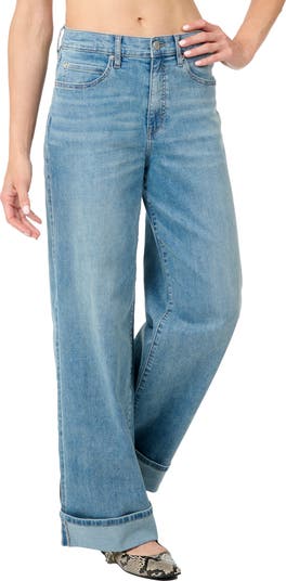 Bring a relaxed vibe to your denim rotation with these wide-leg jeans designed with a classic high-rise waist and wide cuff that pools around the ankle for a casual finish.