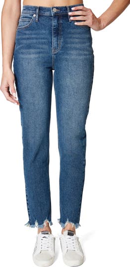 Keep your look casual with these high-waisted slim jeans cut from stretch-cotton denim and framed by chewed-up hems.