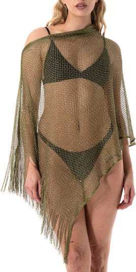 Perfect for beachside lounging, this open-knit, lurex-flecked poncho adds a splash of shimmer to your day.