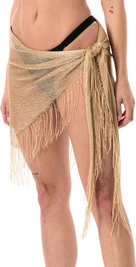 Perfect for beachside lounging, this netted sarong flecked with metallic fibers adds a splash of shimmer to your day.