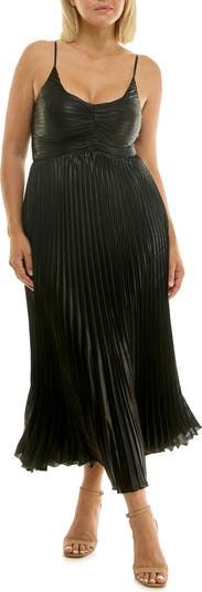 Pleated Metallic Midi Dress
