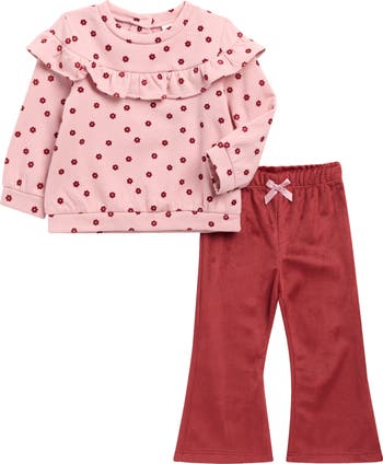 Baby will stay comfy and cozy when the temperature drops in this floral-printed sweatshirt paired with velour leggings.