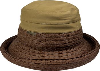 Upgrade your sun-kissed essentials with this woven bucket hat featuring a curved woven brim.