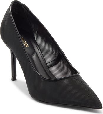Featuring a pointed toe and sheer mesh construction, this pump offers a sleek silhouette with a modern, lightweight feel.