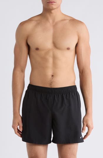 Make a splash in these classic swim trunks sporting handy side pockets, an embroidered Swoosh logo and vented hems.