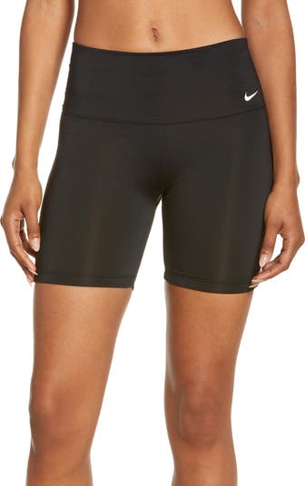 High waist swim shorts provide full coverage in stretch fabric that's fully lined for enhanced comfort.