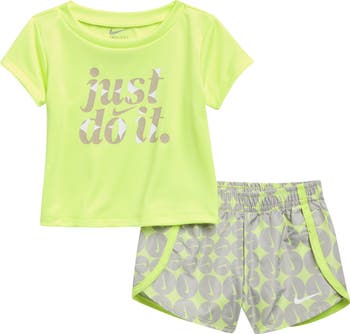 Your little one will look cute and sporty in this active set featuring a graphic T-shirt and matching shorts with signature Dri-FIT tech to wick away moisture.