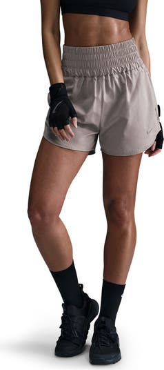Gear up for your run with these lightweight high-waisted shorts constructed from moisture-wicking fabric and designed with brief lining for extra support.
