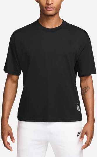 This essential T-shirt crafted from soft knit cotton features a boxy fit and a sporty logo accent at the hem.