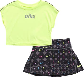 Your little one will look cute and sporty in this active set featuring a graphic T-shirt and matching skort that keep them moving.