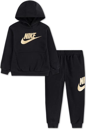 Signature swoosh logo branding keeps all eyes on your kiddo in this classic and sporty set that includes a warm fleece hoodie and joggers.