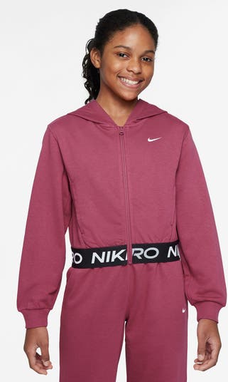 They'll love the athletic vibe of this subtly cropped hoodie featuring a logo-jacquard waistband and signature moisture-wicking tech.