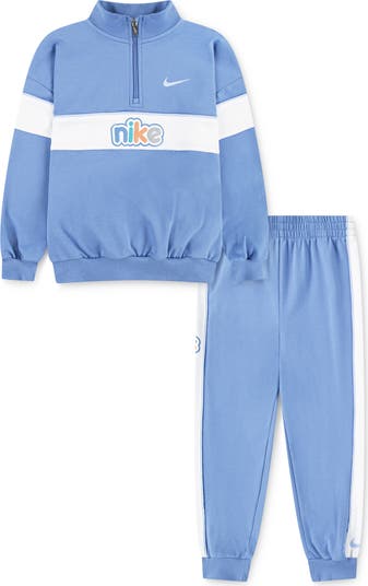 Give your kid sporty style with this quarter-zip sweatshirt and pants set cut from soft cotton-blend French terry.
