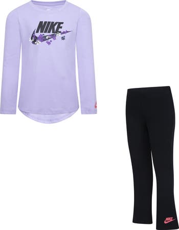 This casual set for your little athlete features a long-sleeve T-shirt and flared leggings that are cut from stretchy cotton offering all-day comfort.