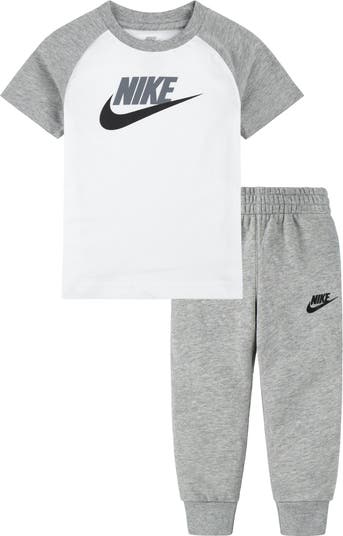 Give your kid sporty style with this logo printed T-shirt and joggers set constructed from a soft cotton blend.