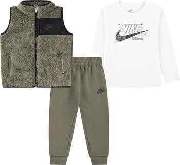 • Nike Kids' Futura Puffer Vest, Logo T-Shirt & Fleece Joggers Set