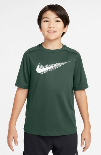 A cool graphic T-shirt built from fabric with Dri-FIT technology keeps your kiddo dry and comfortable while they play.