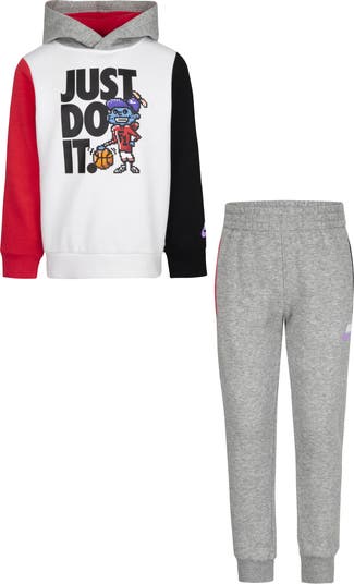 This comfortable set for your kiddo features cozy joggers and a hooded pullover with a playful logo graphic.