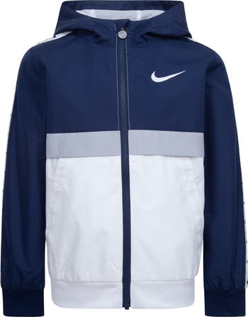 Bring a season-spanning layering essential to your little athlete's wardrobe with this lightweight windbreaker complete with a shower-shielding hood.