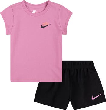 Iconic logos add a sporty touch to this athletic set, featuring a short-sleeve T-shirt and breathable mesh shorts designed to keep your little athlete cool during active play.