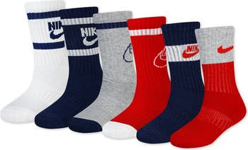 Kids will love the retro-sporty style of these cotton-blend crew socks knit with breathable mesh uppers and ribbed arch support bands.
