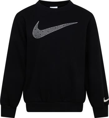 Give your kid sporty style with this warm and soft cotton-blend fleece sweatshirt branded with a metallic Swoosh graphic print.