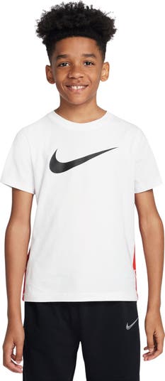 Give your kid sporty style with this soft cotton T-shirt featuring a bold Swoosh logo and side logo-printed tape trim.