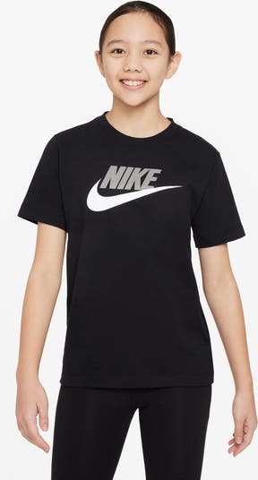 Soft cotton offers lasting comfort for your kiddo in a sporty T-shirt featuring Nike's classic swoosh logo.