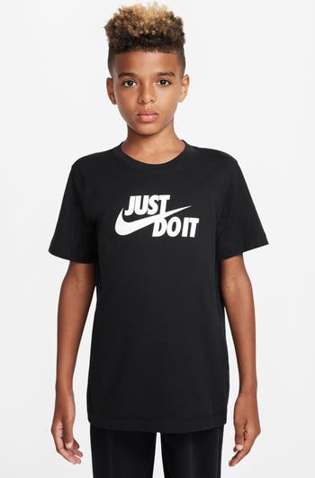 Just Do It logo art brings big Nike energy to a T-shirt made for kids who like to play and win in the comfort of soft, breathable cotton.