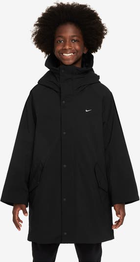 A durable, water-repellent shell keeps them shielded from the elements in this oversized parka that's insulated and outfitted with a fixed hood for extra warmth.